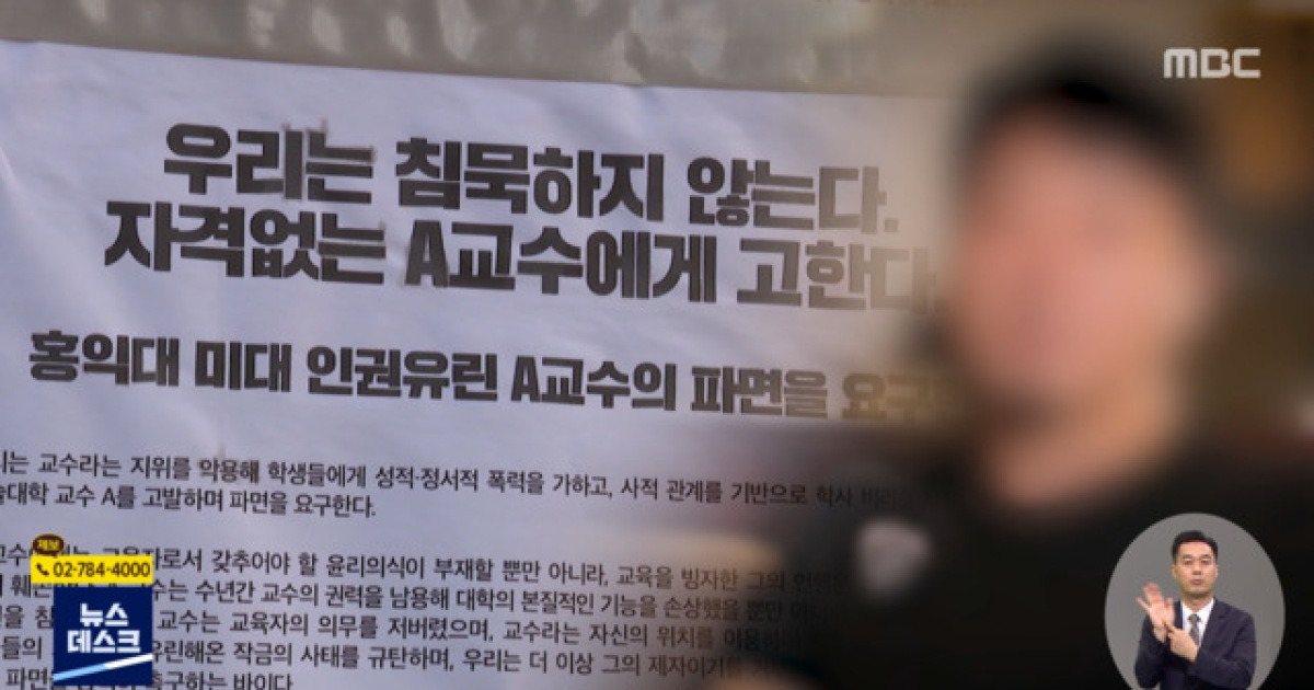 홍대 회화과에 첫 서울대 출신 교수반세기 학맥 깬 파격. 홍대 미대 교수. 학생들은 피해 사례를 폭로하며 학교 측에 교수.